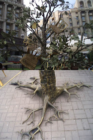 A quintessential street art - a classic framed painting hangs over the sewer piping. Must be there for the enjoyment of all the highly-cultured Ukrainian workers: